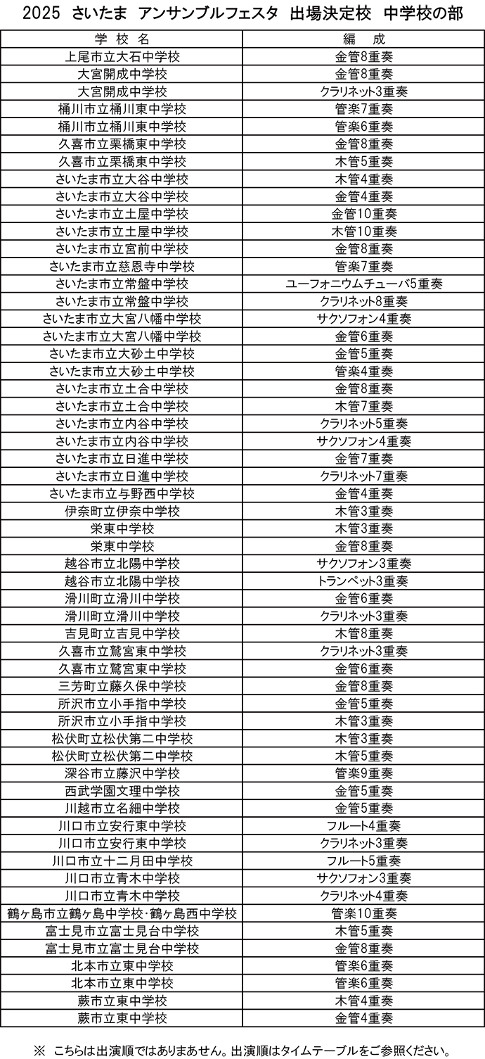 埼玉県内の中学校・高等学校のアンサンブルチーム ※(埼玉県外の学校は参加できません。)